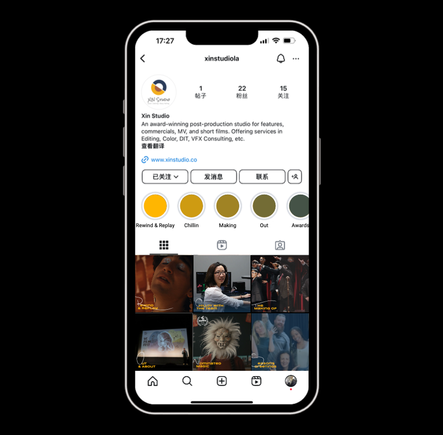 自2024年9月起,为洛杉矶影视后期工作室XIN Studio提供社交媒体Instagram、Facebook的内容运营规划。对XIN Studio过往作品进行梳理发布,通过选题策划呈现工作室的个性及专业性。